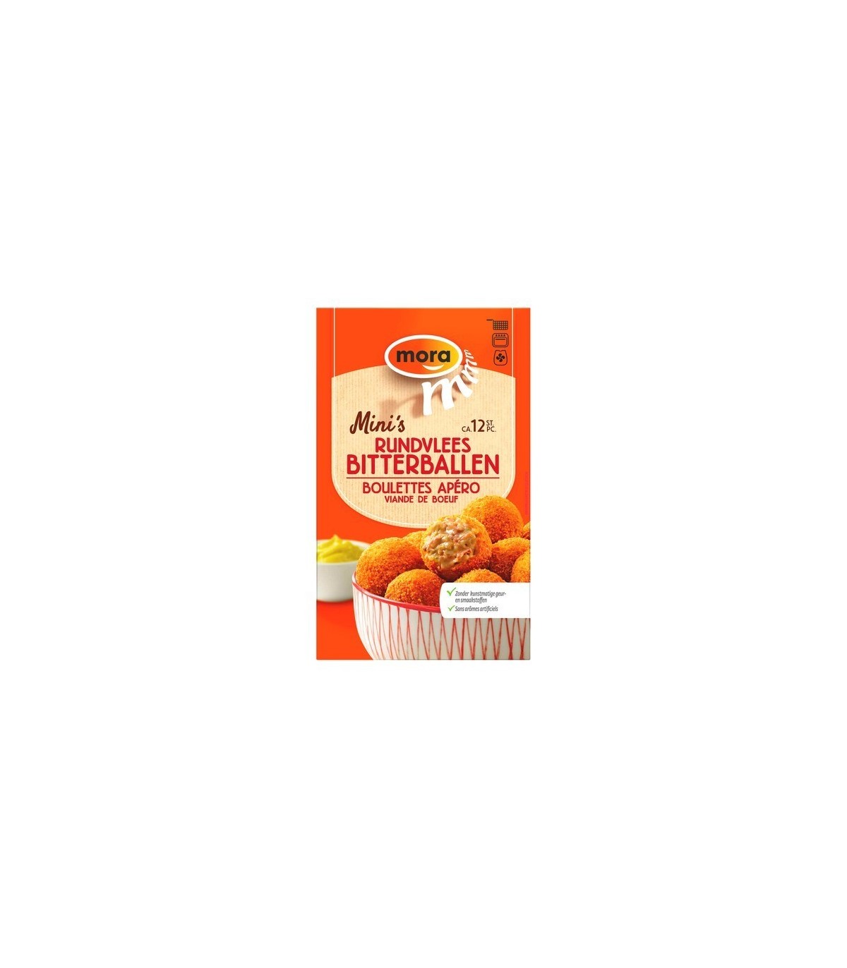 Mora Boulettes Apéro Viande de Boeuf, les Boulettes sont farcies de viande de boeuf tendre et de ragoût onctueux. L'amuse-gueule parfait pour vos apéritifs ou le snack pour les enfant avec des frites. Cuisson à la friteuse ou au four. Chaque paquet contient 12 minis boulettes pour 240 gr.