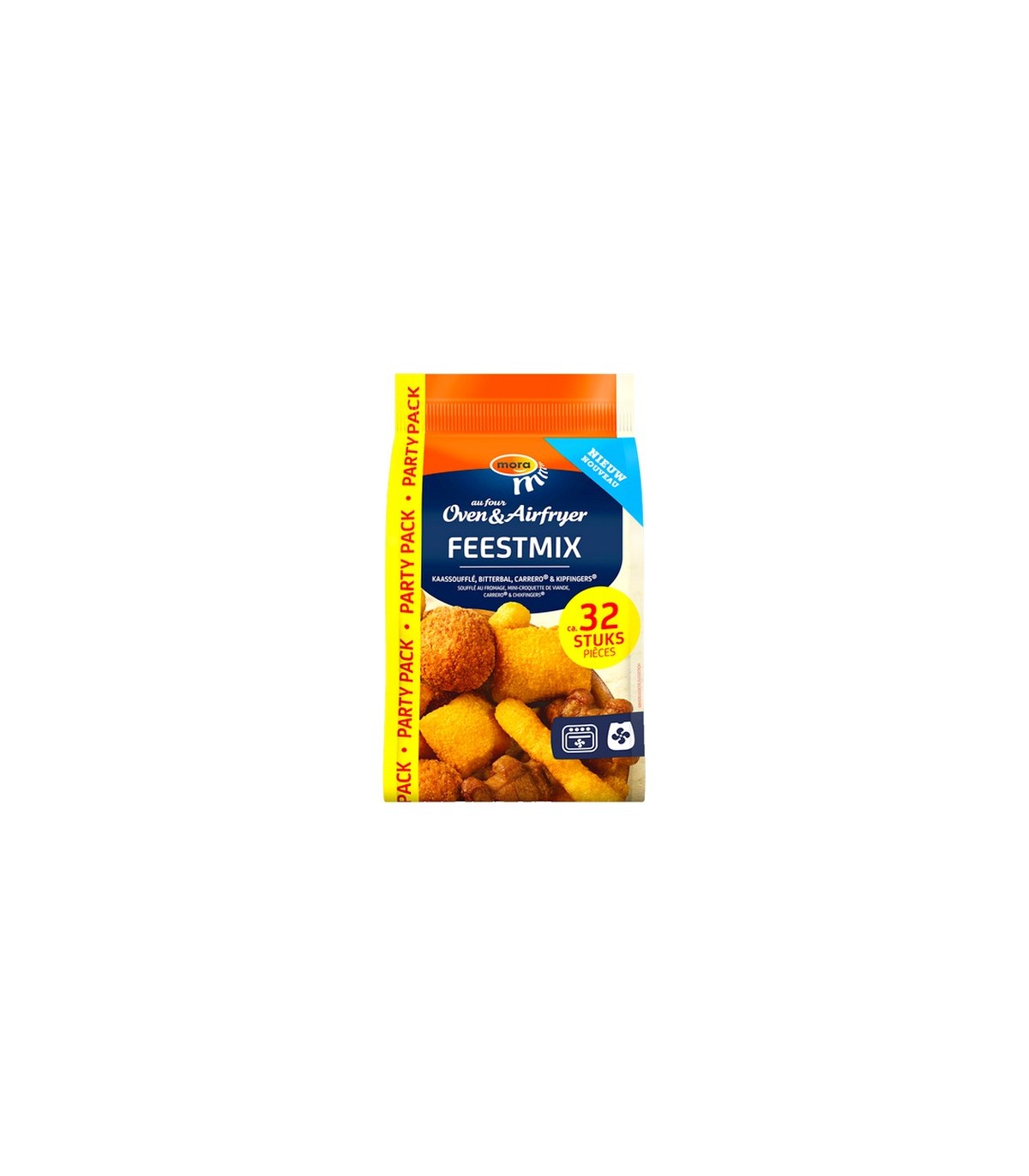 Offrez à vos convives un moment de convivialité avec le Feestmix de Mora, spécialement conçu pour la cuisson au four ou à l’Airfryer. Cet assortiment festif se compose de 32 savoureux mini-snacks : mini-croquettes de viande de bœuf, mini-soufflés au fromage fondant, chixfingers® croustillants et mini-carrero® épicés. Faciles à préparer et irrésistiblement gourmands, ces bouchées sont idéales pour l’apéritif, les fêtes entre amis ou les réceptions familiales. Une solution pratique et savoureuse pour des moments de partage réussis. Chaque boite contient 32 pièces pour 536 gr.