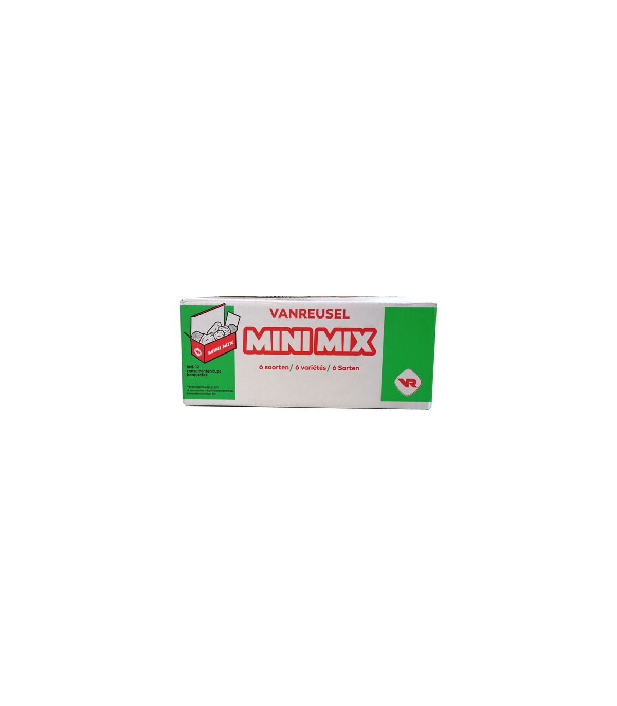 Le Minimix de Vanreusel est une petit party box qui propose les 6 variétés de mini-snacks les plus délicieux présenté dans un ravier. Ce ravier ce compose de 1x Boulettes Party, 1x Mini fricandelle de poulet, 1x Nuggets de filet de poulet, 1x Nuggets ardennais, 1x Mini Crocacoq et 1x Mini Krokidel. Une portion de 6 pc pèse +- 116 gr. Contient 16 portions de 6 pièces.