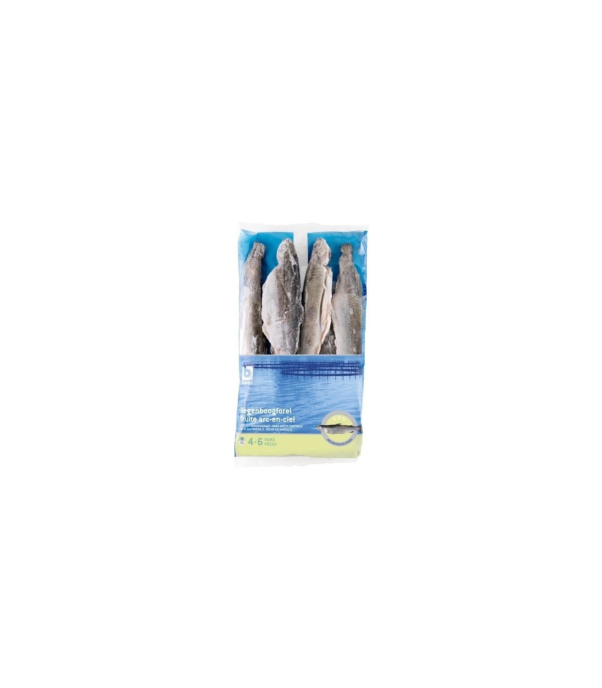 Boni Selection propose des truites arc-en-ciel sans arêtes centrale. Idéal pour vos préparations de truite en papillote, truite grillée ou au four traditionnel, un régale pour les amateurs de poissons. Chaque paquet contient 4 à 6 truites pour +- 1 kg.