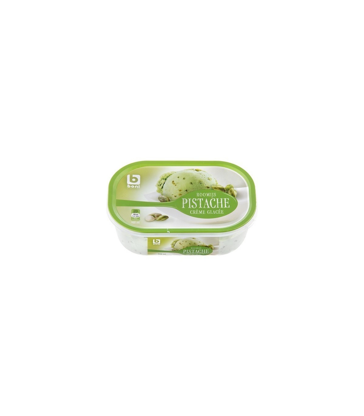 Boni selection crème glacée à la pistache est une crème glacée à la pistache avec de délicieux morceaux de pistache. Présenté dans une coupe à glace ou un cornet pour les enfants, ils en raffolent. Chaque paquet contient 900 ml.