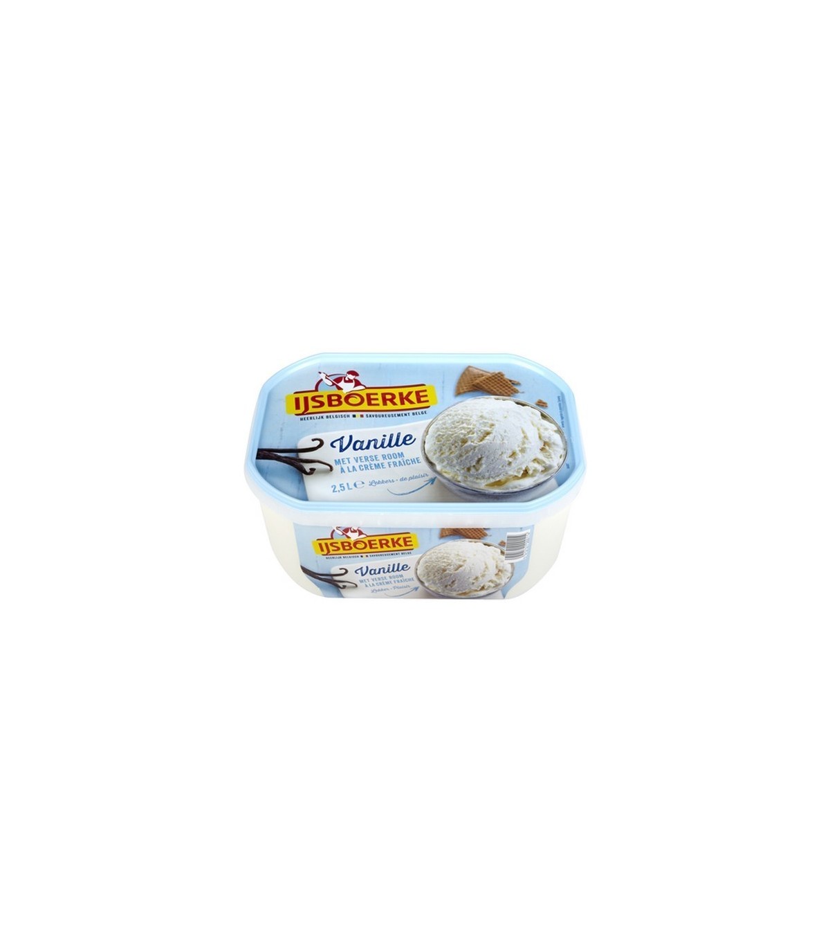 Ijsboerke crème glacée à la vanille est idéale pour réaliser de délicieuses coupes de glaces comme la coupe banana split, coupes aux fruits, coupe de glace aux fraises et des tas de recettes de glace à réaliser. Chaque paquet contient 2,5 litre.