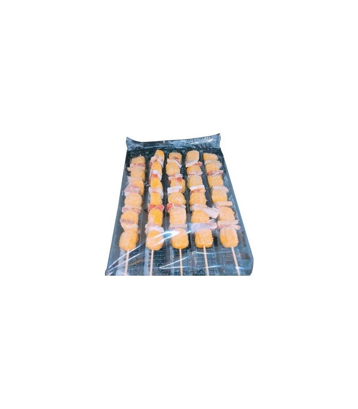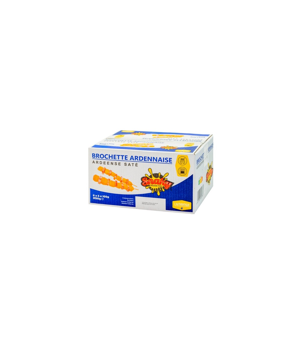 Les délicieuses brochettes Ardennaise de Vanreusel - Snaky sont de savoureux morceaux de viande de porc panés séparés par des tranches de lard fumés légèrement piquantes. Chaque plateau contient 6 plateau de 5 brochettes de 105 gr.