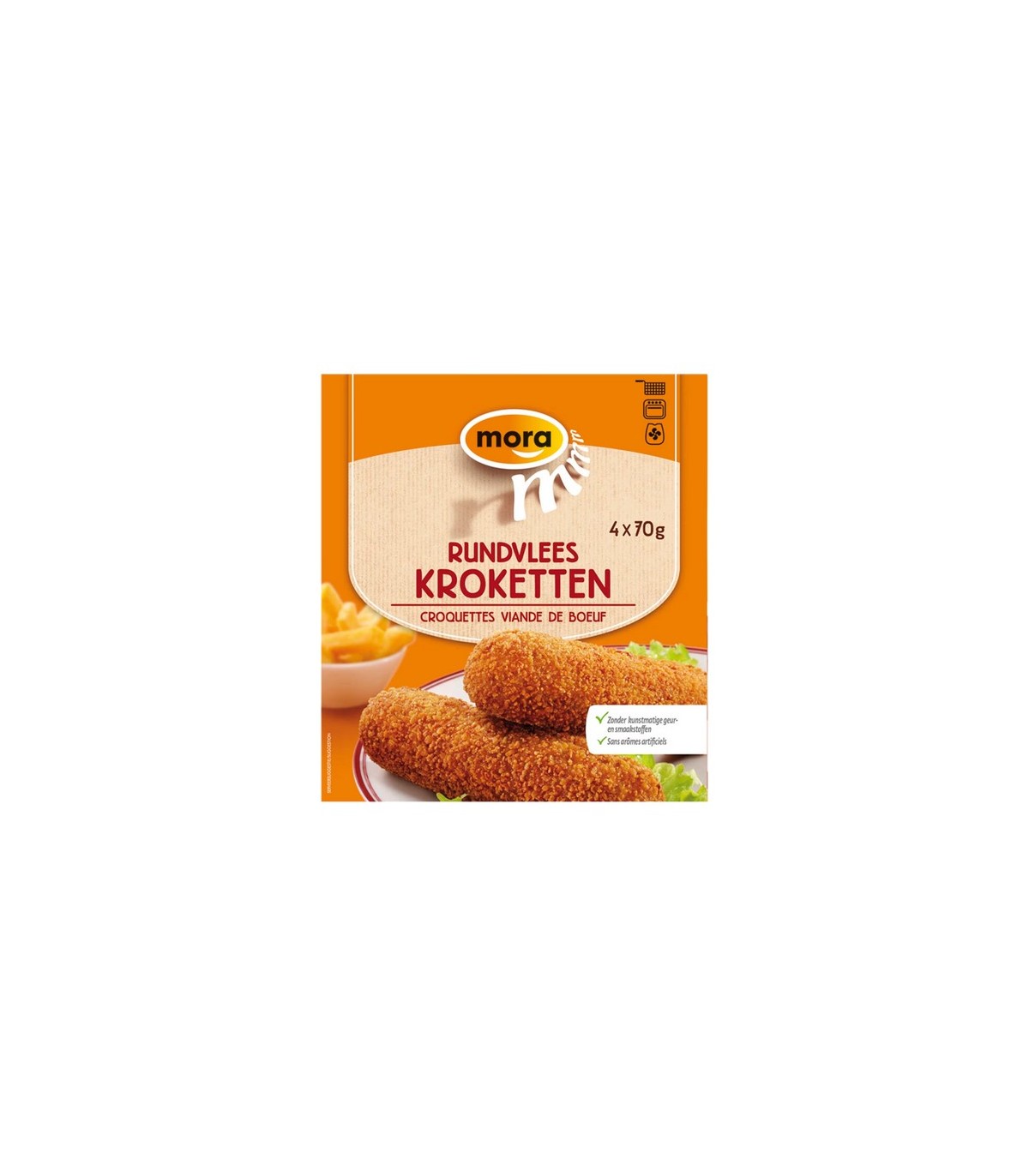 Mora Croquettes de viande de boeuf est une délicieuse préparation à la viande de boeuf enrobée dans une panure. Délicieusement présenté sur une assiette composé d'une petite salade vous fera une délicieuse entrée et ravira tous vos convives. Chaque paquet contient 4 croquettes de 70 gr.