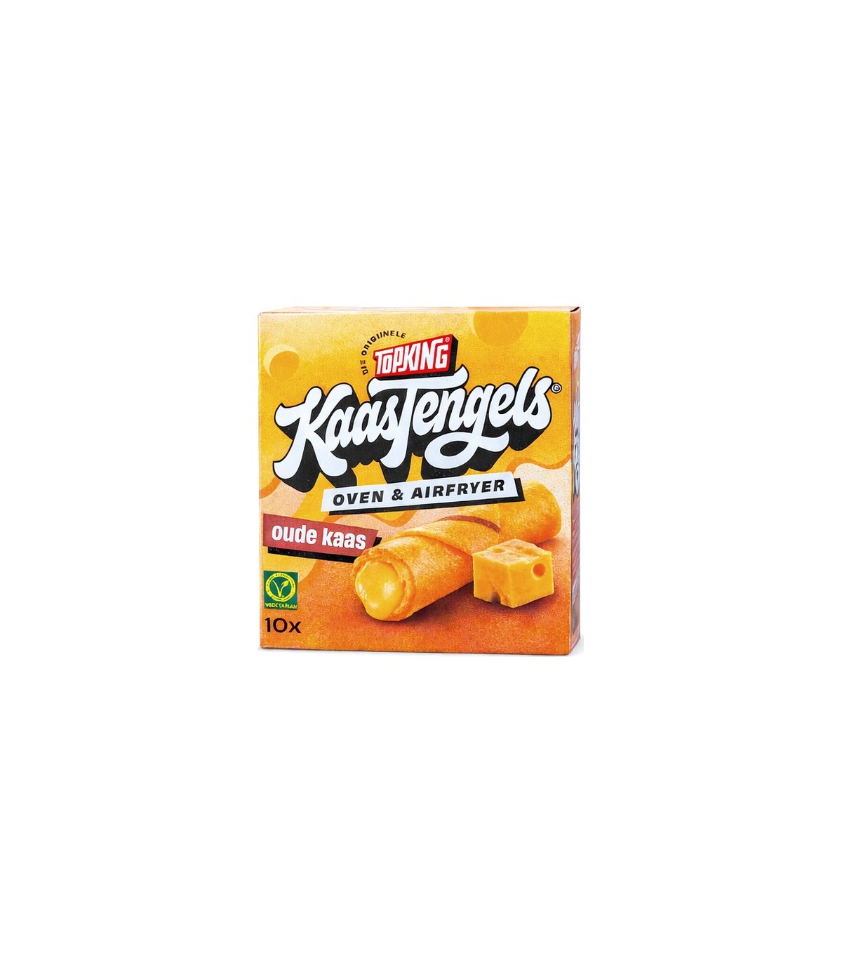 KaasTengels Topking au fromage vieux 150g, bâtonnets croustillants au cœur fondant. Parfaits pour apéritif, cuisson rapide au four ou airfryer.