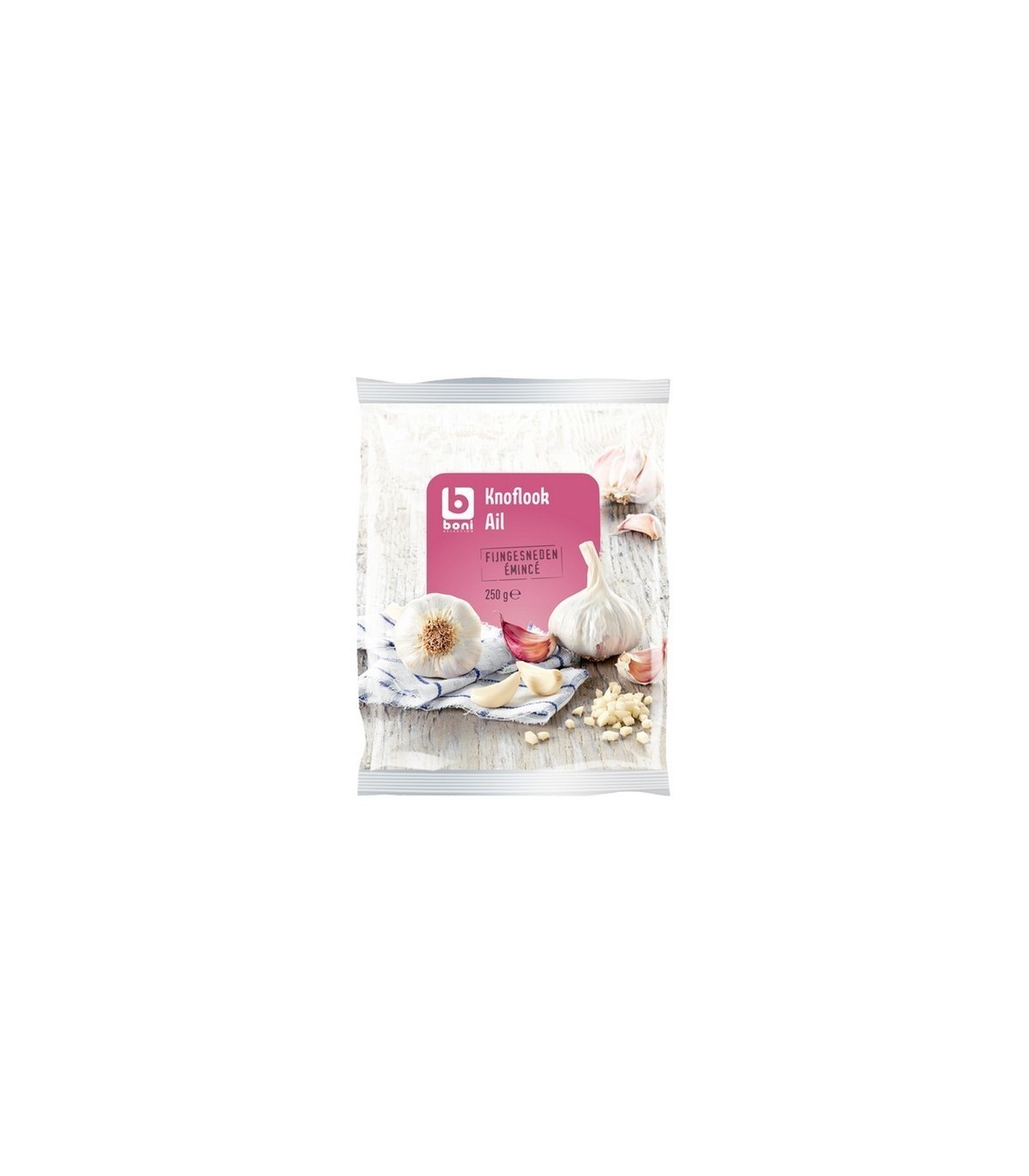 Boni Selection ail émincés est un légume condimentaire, elle permet d'agrémenter des plats, scampis, poissons, viandes, vinaigrette, pain à l'ail, sauces tomate, sauce blanche ... Chaque paquet contient 250 gr.