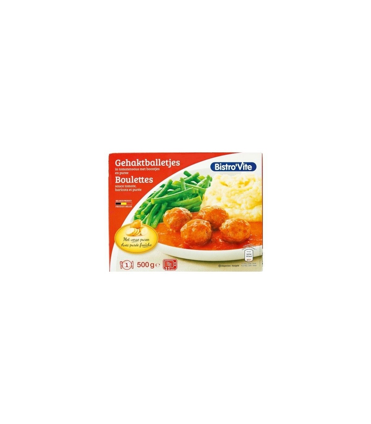 Bistro Vite boulettes sauce tomate haricots accompagné d' une onctueuse purée fraîche. un repas délicieux et traditionnel pour une personne, repas prêts à lemploi dans un ravier pratique adapté au four et au four à micro-ondes à la maison ou au travail. Chaque paquet contient 500 gr.