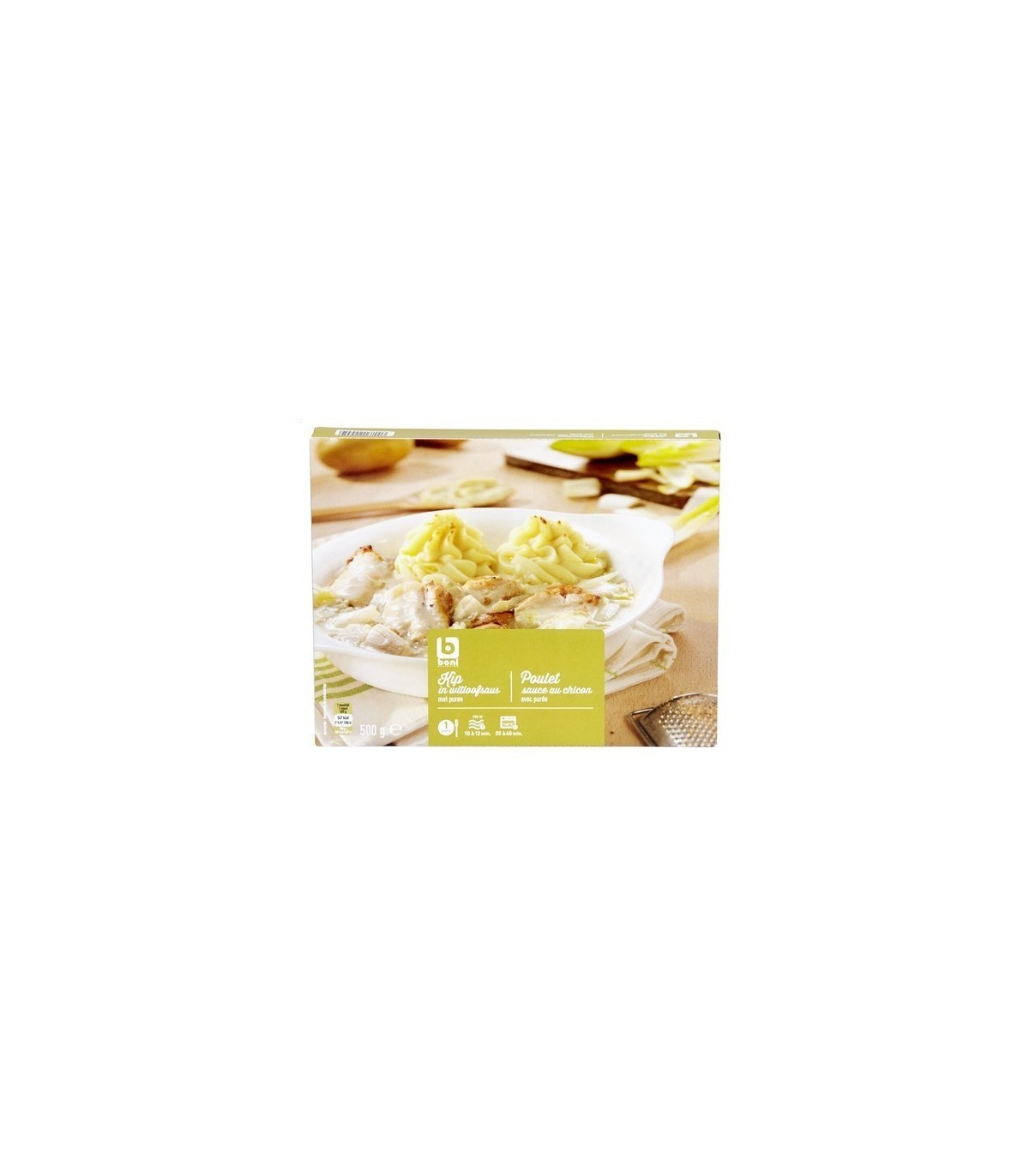 Le poulet sauce chicon (endive) de Boni Selection contient 17 % de poulet, purée, sauce au chicon (endive). Ce plat peut être réchauffé au four traditionnel ...