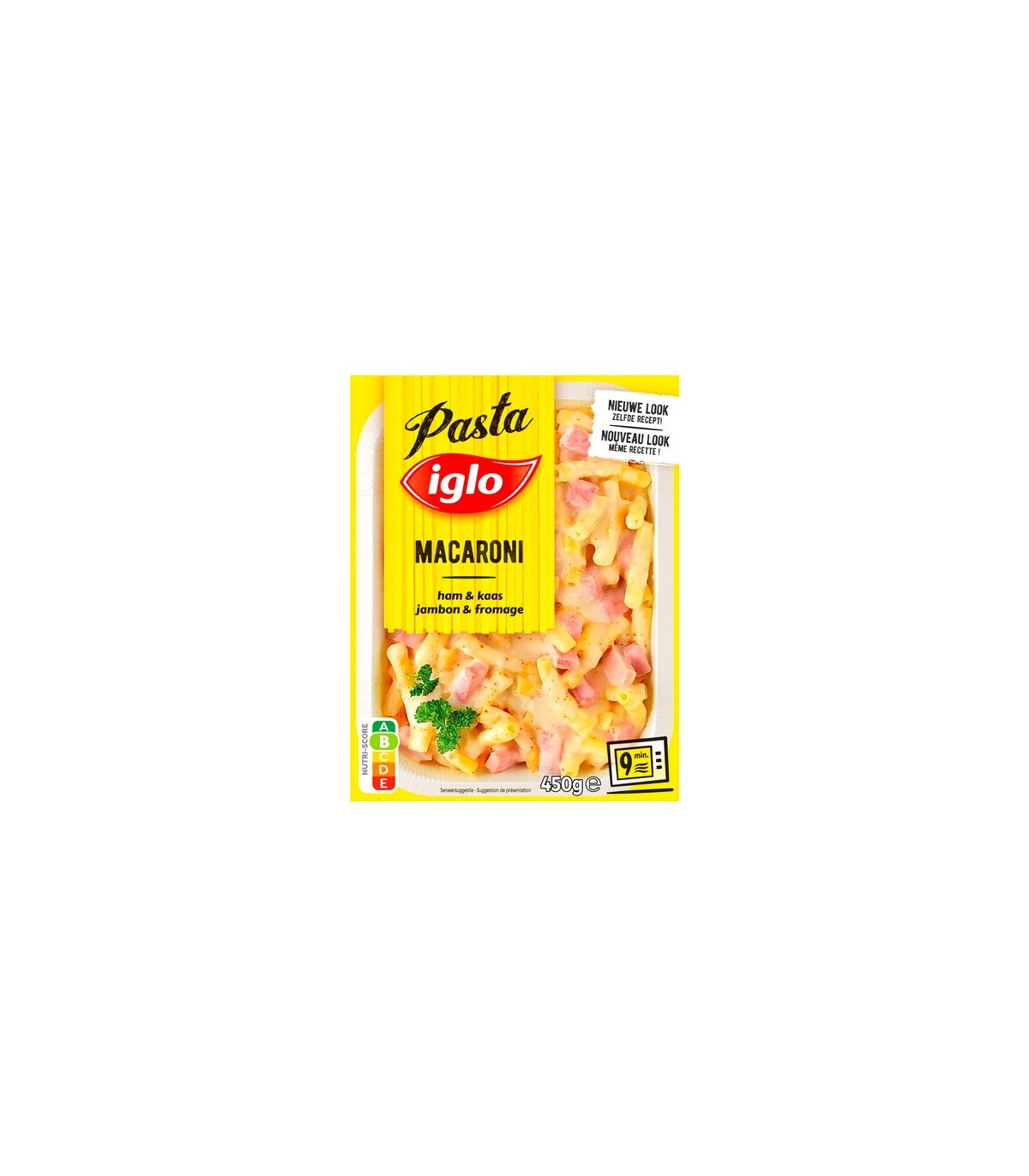 Iglo macaroni jambon fromage est un repas complet de pâtes et de cubes de jambon le tout dans une savoureuse sauce au fromage et épices à réchauffer au micro-onde ou au four traditionnel. Délicieux et rapide. Chaque paquet contient 450 gr