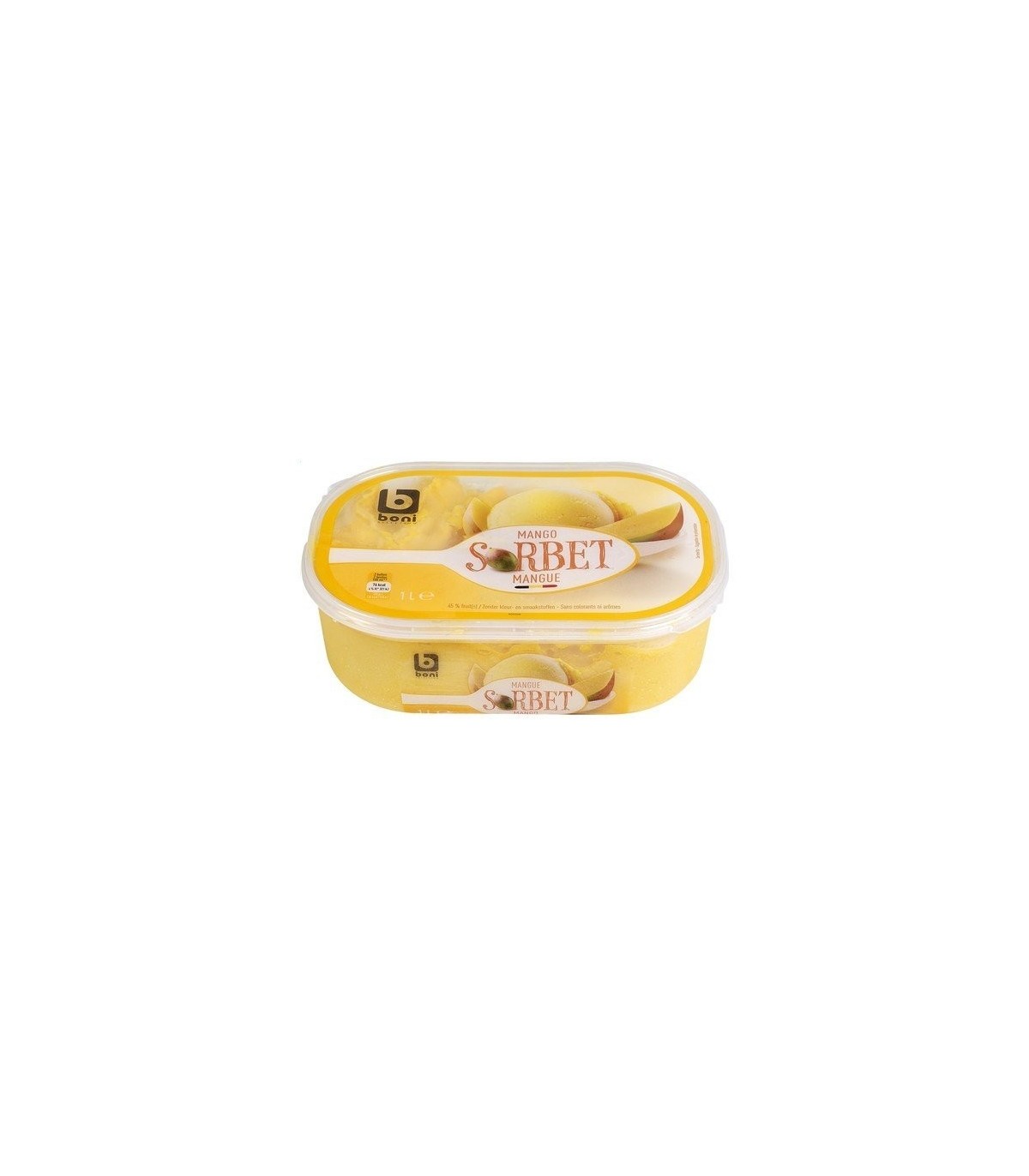 Boni Selection sorbet mangue avec 45% de fruits dans le produit fini, onctueux sorbet mangue très rafraîchissant en été, un moment de détente entre amis ou en famille lors de barbecue. Une touche de frais après un repas. Chaque boite contient 1 litre.