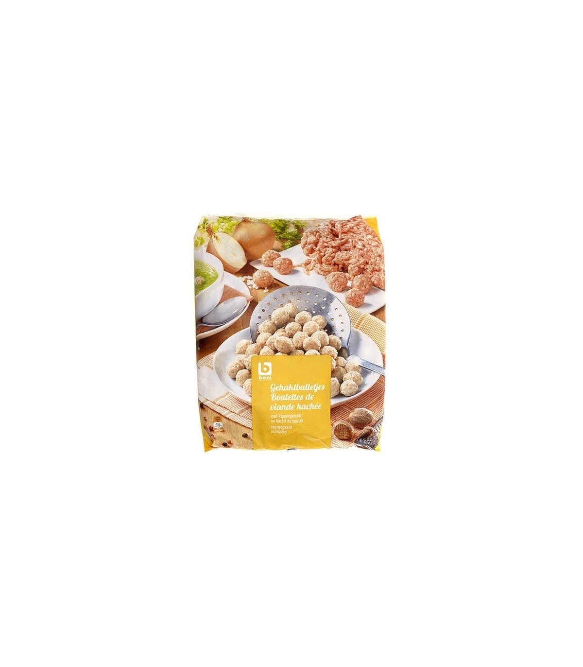 Boni Selection boulettes de viande de sont préparées à partir de hachis de viande de poulet d'origine Belge est doivent être cuites minimum 10 minutes après avoir été décongelé légèrement. Ces boulettes sont idéale pour agrémenter vos potages et autre soupes, sauce tomate, ... Chaque paquet contient +- 33 boulettes pour 1 kg.
